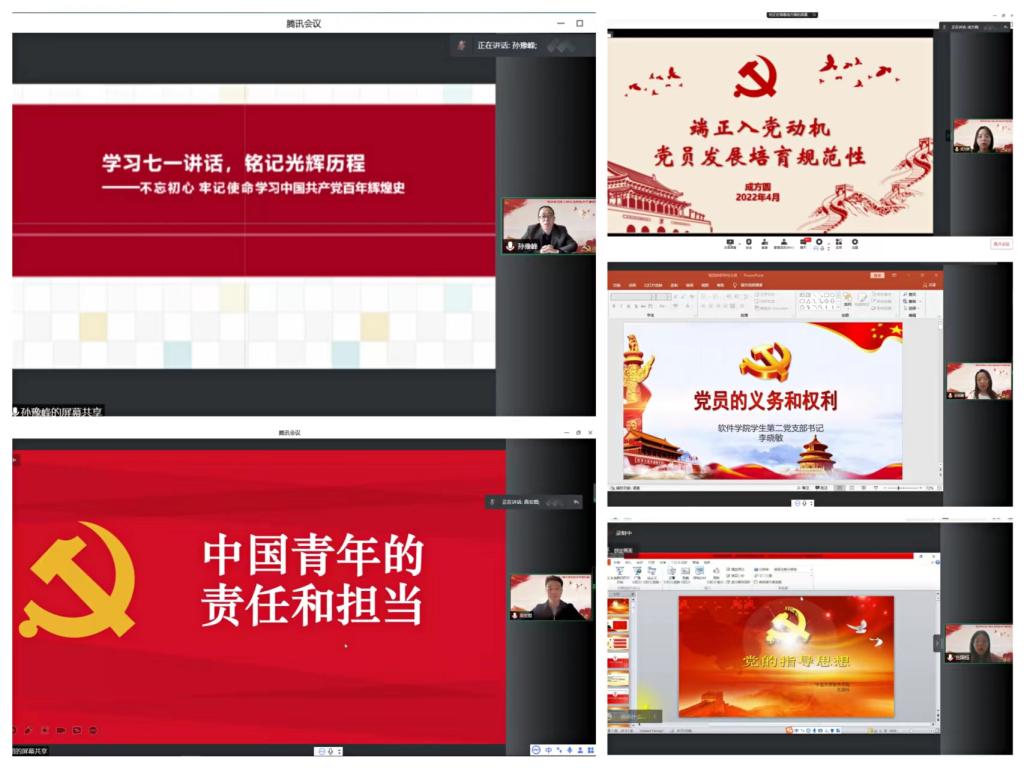 优秀学生党员代表王彦伟同志、景昱同志分别以《人工智能信创产业的软件前景》和《软件工程学科如何修炼自己的专业能力》为题,向学员们分享了软件工程专业上的前沿知识及自己的学习经验,带给学员们更好的目标规划和学习上的启发,充分发挥了学生党员的先锋模范和榜样引领作用。