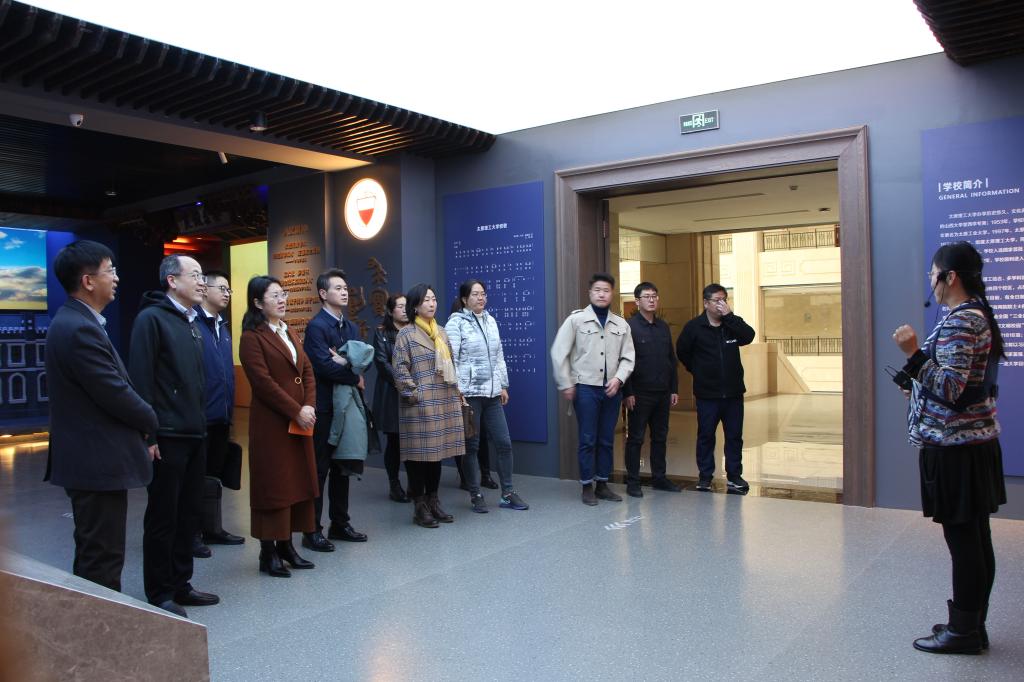 院长赵涓涓教授的陪同下,调研团队首先参观了太原理工大学校史馆。跟随着讲解员的引导,参观了校史馆的两大展厅七大板块,近距离感受了太原理工大学的厚重历史文化底蕴和“求实、创新”的校训,深刻领会了百年老校彰显“敢为人先、敢于竞争、敢于创新”的精神气质。
