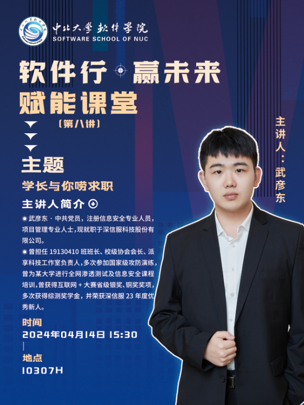 在10307H教室举办了“‘软件行·赢未来’赋能课堂第八讲 —— 学长与你唠求职”。本次课堂邀请巨乳白虎