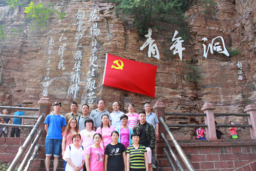 学习团队前往青年洞进行学习。红旗渠青年洞修筑在太行山腰的峭壁之上。它是红旗渠水工、建筑和自然景观结合最为精妙的地段,也是红旗渠建设最艰巨的地段,还是红旗渠总干渠的咽喉工程之一。因参加凿洞的突击队是从全县民工中抽调出来的300名优秀青年,故取名叫“青年洞”。在青年洞前,巨乳白虎