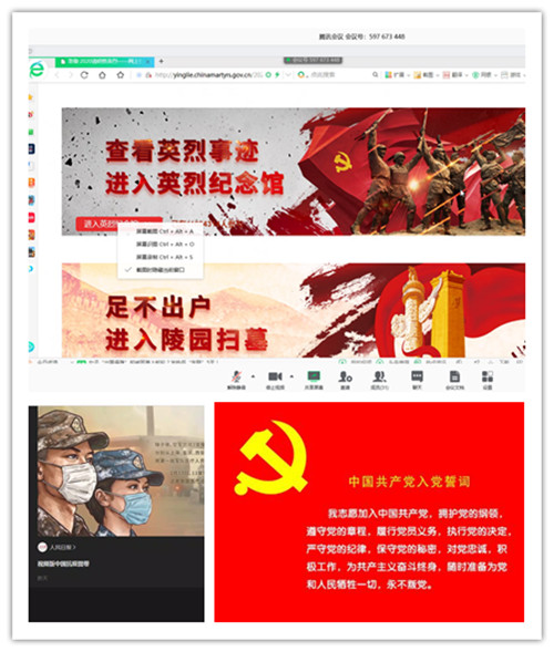 本次党日活动采用线上会议的形式进行。各位党员同志首先进行了网络祭扫活动,为英烈献花,每位党员同志都献上了自己对先烈的尊重和敬佩。