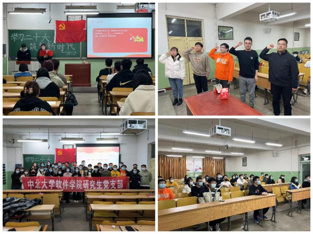 研究生党支部全体党员在01106H教室开展了以“学习二十大·筑梦新时代”为主题的党日活动。