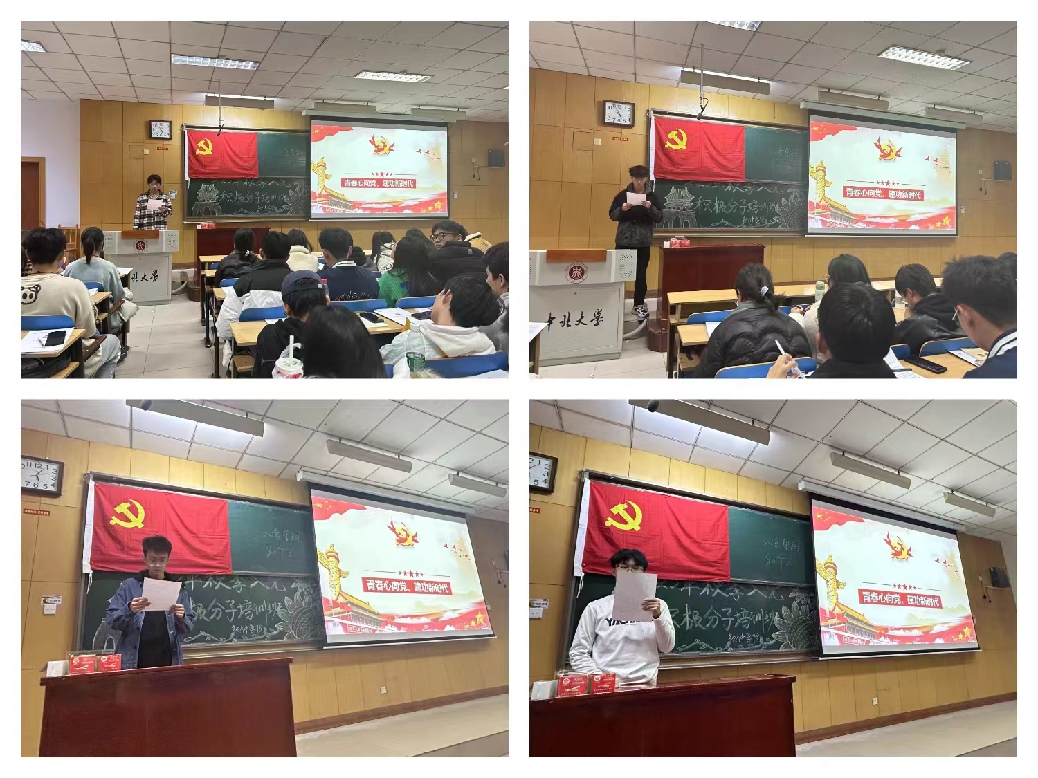 在小组讨论环节,所有学员进行了主题为“青春心向党,建功新时代”的热烈讨论。各小组代表分别阐述了对于中国共产党的全面认知,以及党员责任的重要性和艰巨性,学员们也认识到了自己与党员之间还存在一定的差距,需要不断学习,努力向党组织靠拢。学员们表示要以本次学习为新的起点,坚定不移听党话,跟党走,筑牢理想信念,紧扣第一粒扣子,切实提高理论水平和党性修养,并自觉在祖国的建设中勇担青年的责任与使命。