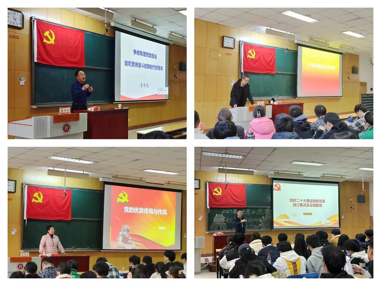 党委副书记兼副院长高宏图分别以《正确认识党员权利和义务》《党的指导思想》《党的光辉历程》《党的组织原则和纪律》《争做有理想敢担当能吃苦肯奋斗的新时代好青年》《入党手续及文书写作》《党的优良传统与作风》《党的二十大通过的新党章修订要点及总纲解读》为题进行了专题党课讲授。老师们的课程充实而深刻,极具思想性。通过展示丰富的历史资料、详实的数据和生动的案例,结合党的历史与新使命,从多个维度深入阐述了党的光辉历程、伟大贡献和新时代责任;从他们的工作经验、人生阅历中,诠释了党课培训的重要意义,为广大学员带来了一场场深入解析。同时老师们对入党积极分子提出的问题作出了细心、严谨、耐心的解答,让学员们受益匪浅。