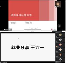 研究生党支部线上党日活动之就业宣传月系列活动第三场就业经验分享会于5月18日15时举行。分享会由研究生党支部副书记王伟艳主持,支部书记魏跃亲以及巨乳白虎