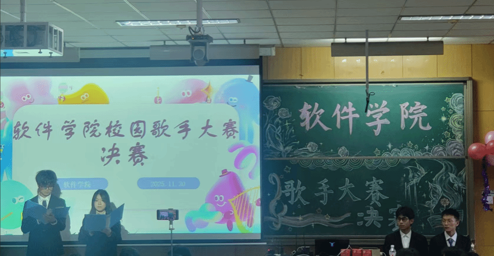 历经初赛严格筛选,十位优秀选手脱颖而出晋级决赛。大赛创新采用分组竞技模式,初赛前五名组成星光组,唱功扎实、台风稳健;六至十名组成追光组,怀揣热爱、勇敢追梦。从分组PK到终极对决,各轮比拼扣人心弦,选手们全力以赴,用歌声诠释热爱,尽显软院学子昂扬风貌。